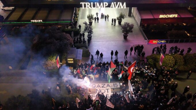 İstanbul Trump Towers önünde protesto: “Bu tabela buradan inecek”