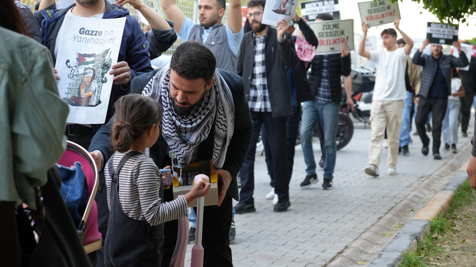 Kendilerini “dünyadaki tüm mazlumlar için elinden gelen her şeyi yapmaya yemin etmiş bir avuç genç” olarak tanımlayan hareket üyeleri, etkinlik boyunca çocuklarla birebir ilgilenerek Gazze’de yaşanan insanlık dramına dikkat çekerek hediyeler verdiler.